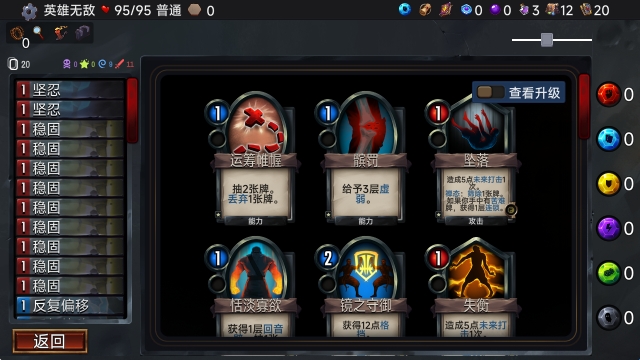 3、解锁内容:游戏内的四个职业,每次通关可解锁或精通一张卡牌。