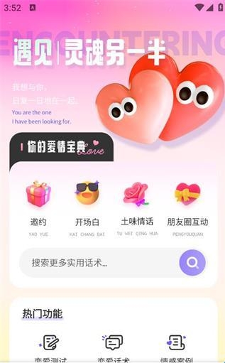 2、从聊天话术提供、情感问题解答,到爱情账单记录、情侣素材获取,再到失恋治愈,所有功能集中于一体,用户无需切换多个应用。