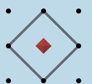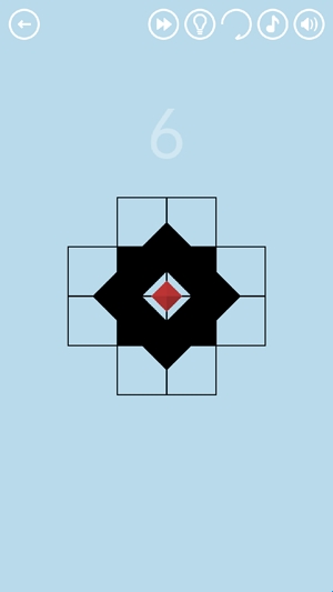 6、第6关先转动中间四个方格拼成白色小菱形,得到红宝石。在转动所有方格拼成大菱形,点击就可通关。