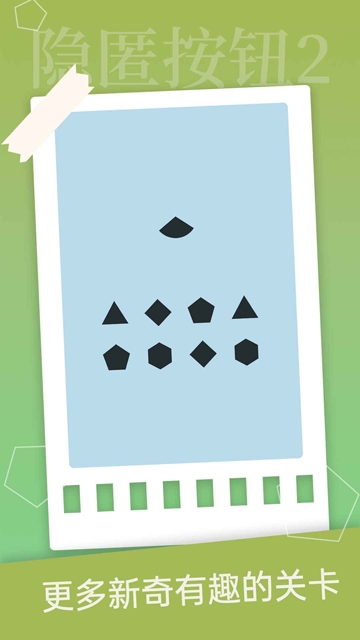 隐匿按钮2英文名又叫做Hidden Button 2,是一款画风清新的休闲解密游戏。游戏里过关的按钮全部都被隐藏了起来,玩家的任务就是找到每一关的按钮。游戏十分烧脑,要在简易的图片提示中,解锁到关键信息,不同的关卡需要不同的解密思路,对解密感兴趣的朋友,快来下载吧。