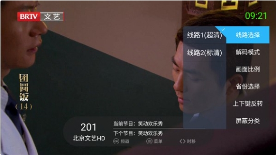 3、如果用户是在安卓手机上观看,点击手机屏幕弹出频道列表、线路选择、解码方法菜单。如果您在电视上操作,请按遥控器上的OK键调出上述菜单。