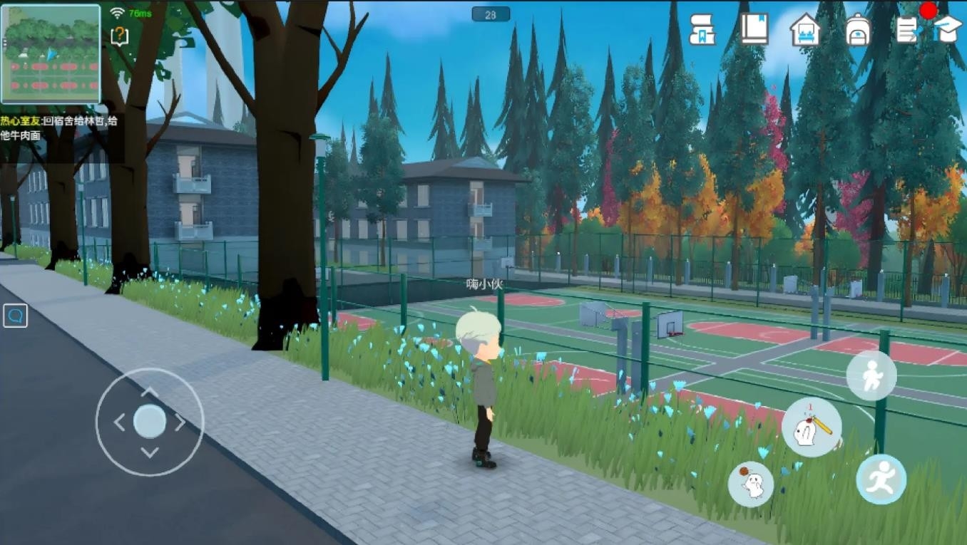 2、游戏采用低多边形建模搭配明亮的色彩和日系动漫风格,精心还原了樱花树、校园建筑等场景。角色动作生动夸张,环境互动细节丰富。