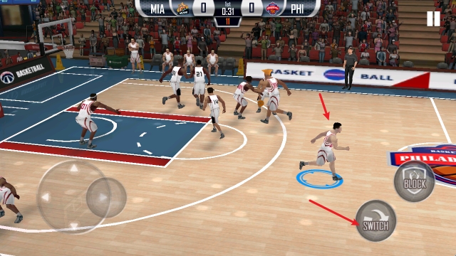2、防守状态下,点击右侧的SWITCH可以切换球员。