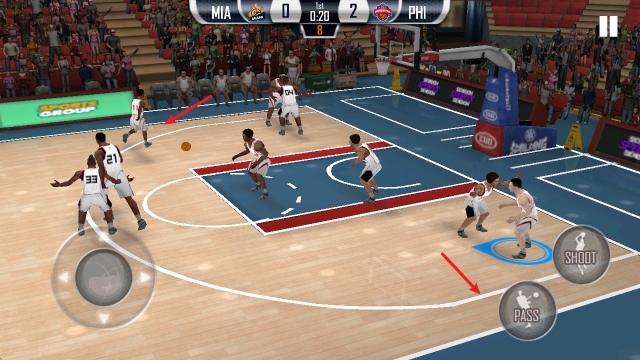 3、持球状态下则会变成传球,同时更换操控的角色。
