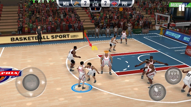 4、点击shoot即可在不同位置进行投篮,透出后的百分数代表了命中的概率。