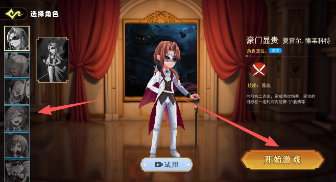 2、游戏初期可从四位角色中任选其一作为你的冒险者,开启通关挑战;