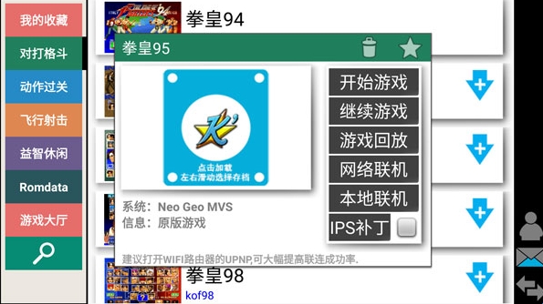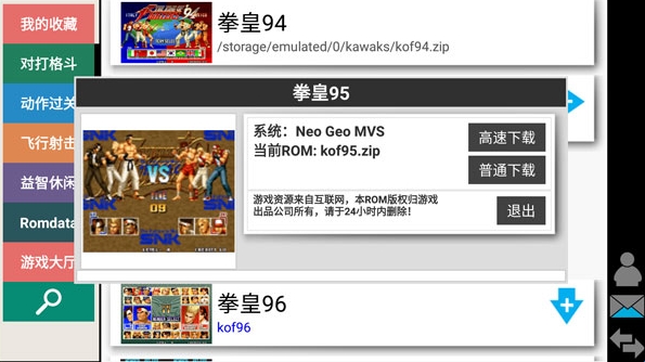 如果我们要玩拳皇95的话,那么我们可以在对打格斗分类里面找到,然后点击高速下载或者普通下载来下载该游戏;