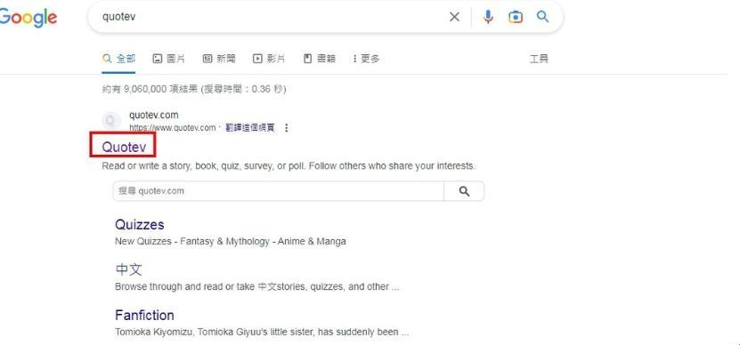 1.搜寻quotev,点第一个。