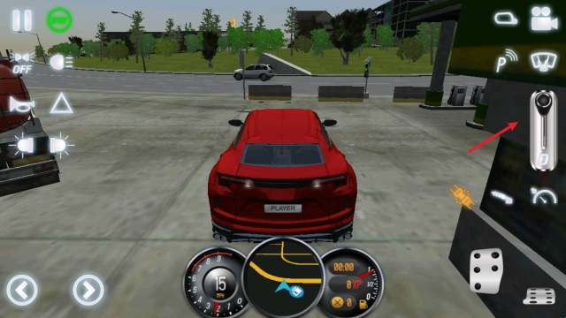 1、进入场景后,点击左上角的sport启动引擎,将右侧的档位推到D。