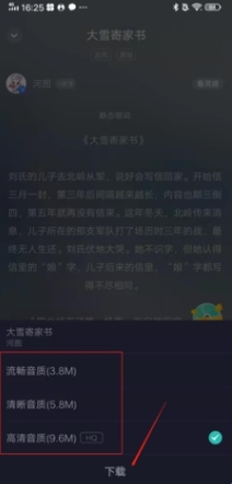 2、在弹出窗口中,选择想要下载歌曲的质量,最后点击“下载”,这样就可以将歌曲下载到本地了。