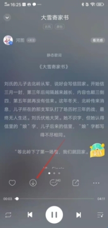 1、首先进入想要下载的歌曲页面,点击下方的“↓”按钮;