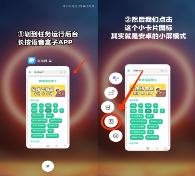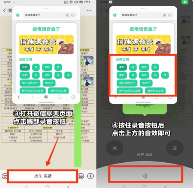 3、还专门给微信、QQ做了变声教程,一点都不复杂 ——你把 APP调成小屏,然后按住微信或 QQ的录音键,同时点一下 APP里的音效,就能快速发出去带刘海柱味儿的变声语音,跟朋友聊天用这个,氛围一下就活跃起来了。