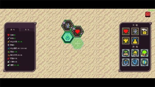 6、当积累一定经验后就可以获得点数,点击右侧的按钮可以进入升级界面,你可以消耗点数选择不同的天赋和技能。