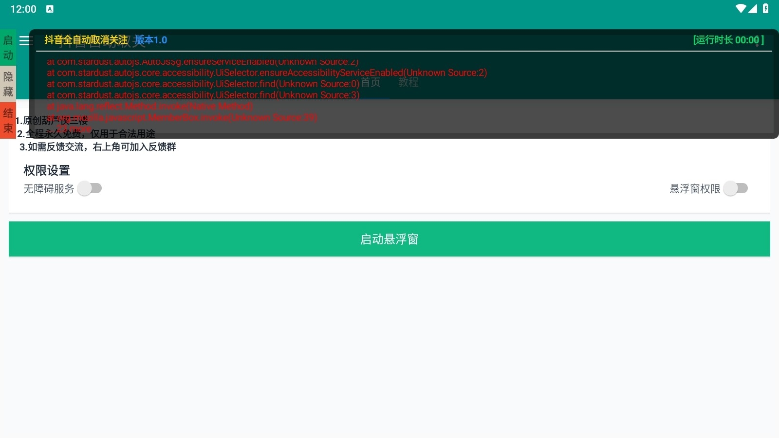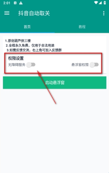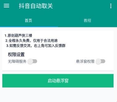 进入软件后,选择打开无障碍和悬浮窗权限,启动悬浮窗