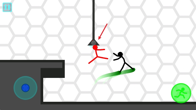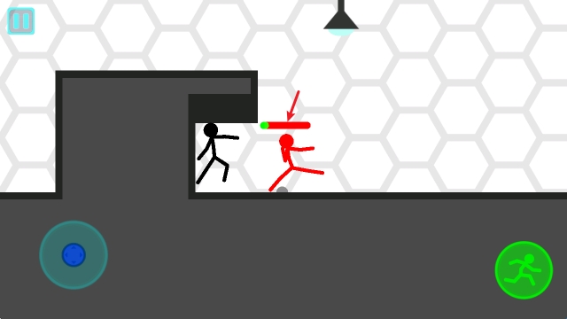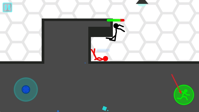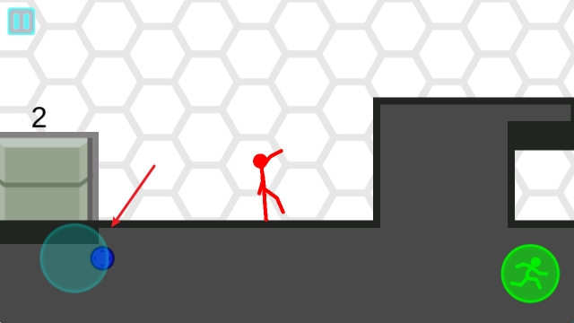 1、进入游戏中,点击左侧的摇杆即可控制火柴人移动。