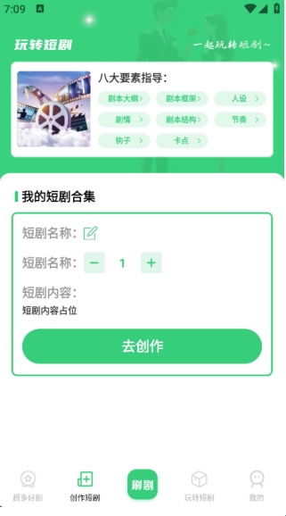 在玩转短剧页面中有5大爆款题材的短剧,让你们可以进行互动创作。