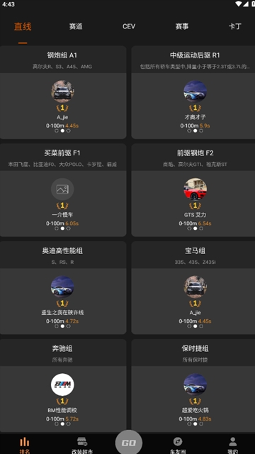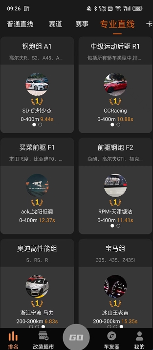 车涯测速又叫P-GEAR,是一款非常专业的汽车测速软件。在这里,你可以看见各种品牌、款式的赛车速度数据,分别记录从0-100公里/小时、100-200公里/小时、0-200米、0-400米等项目的基本速度。还可以查看个人汽车速度的排行,查看自己测速的成绩好坏!感兴趣的小伙伴快来下载体验一下吧!