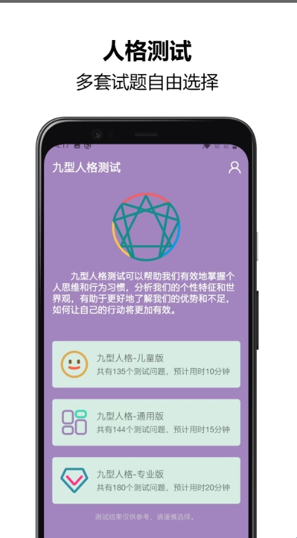 基于Enneagram九型人格理论设计而成,国际上通用测试题库。
