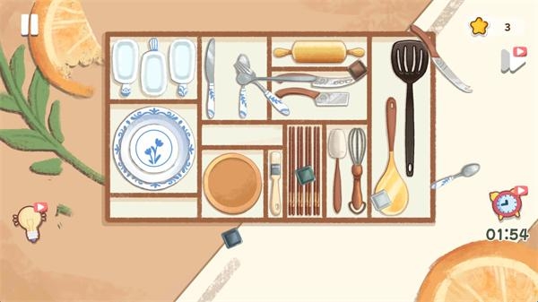 2、看清楚每一个物品的形状,然后将它们放在合适的位置,帮助你过关;