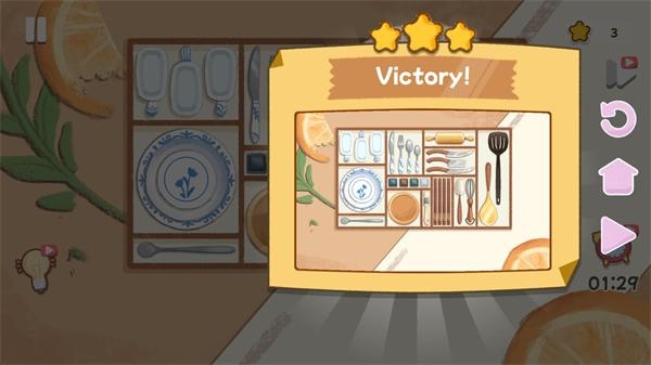4、当所有的物品全部摆放在正确的位置后就可以通关了。