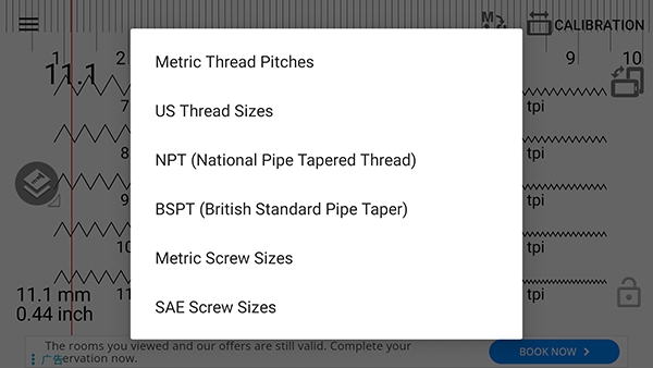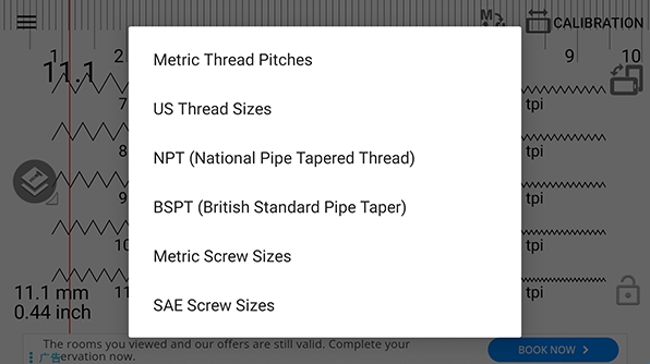 螺距计算器又叫Thread Pitch,这是一款专为测量螺丝和螺栓的工具。软件使用简单,用户只需要在这里点击你需要测量的螺丝,并用摄像头对准他们即可一键测量,只需几秒就可以得到非常精准的答案!有需求的小伙伴快来下载体验一下吧!