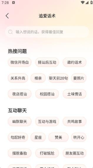 收集了大量的追爱话术资源,用户可以对各种各样的追爱话术进行学习使用。