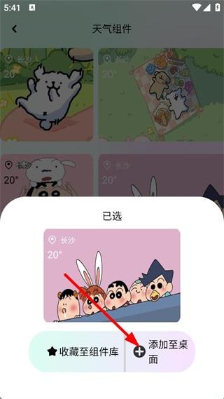 3、选择好天气组件样式后,点击添加至桌面,将该天气组件添加到桌面。