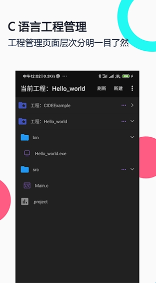 1、C语言代码一键编译:通过软件可以直接创建C语言项目,创建C语言源码文件一键编译运行;