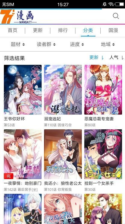 77漫画是一款纯净好用的免费漫画阅读平台。软件有着海量的漫画资源,并且每天都会最新许多漫画章节,不仅内置更新、排行、分类、国漫等板块,用户还可以通过题材、读者群、进度、地域来进行筛选,你想看的都在这里。软件界面清新,提供多种阅读排版设置,感兴趣的朋友们快在游娱下载体验吧。