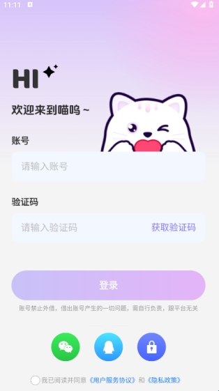 在登录页面中输入手机号、短信验证码即可快速的登录;