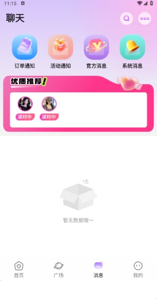 在消息页面中可以了解订单通知、活动通知、官方消息以及系统消息等内容。