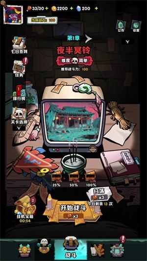 1、进入游戏后点击主界面的开始战斗按钮开始闯关。