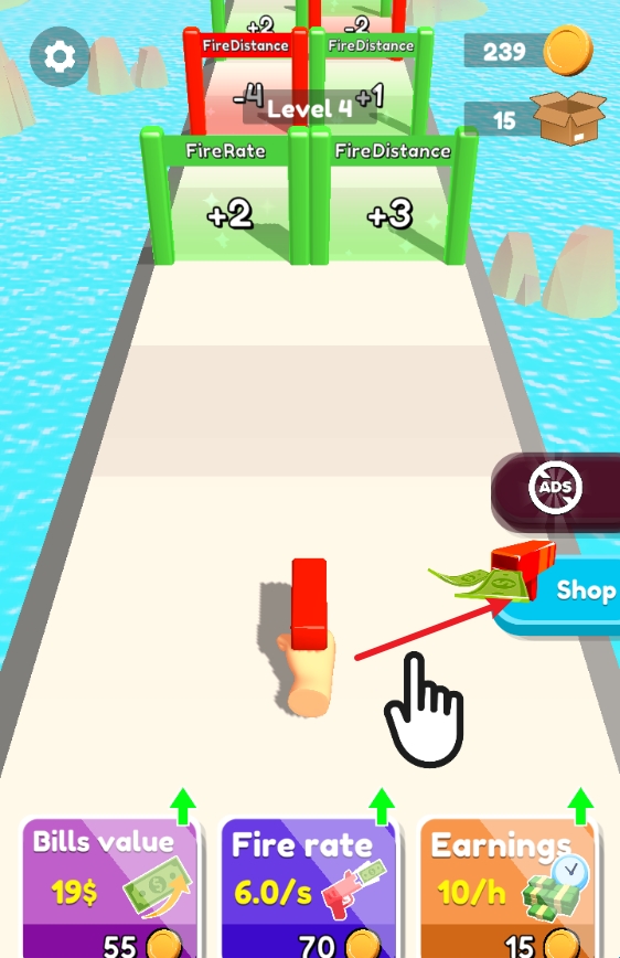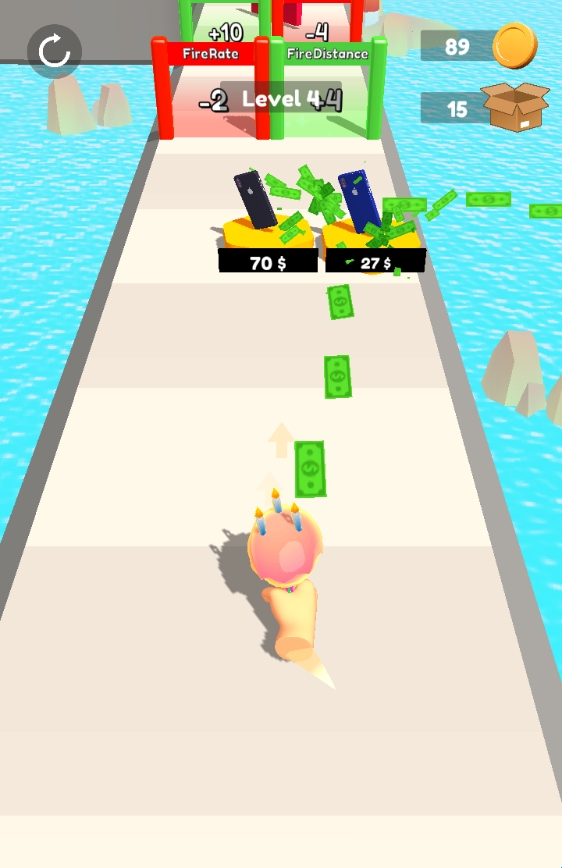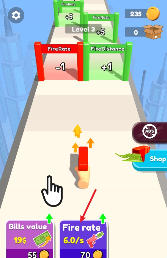 2、正式开始后,左右拖动屏幕即可移动钞票枪。