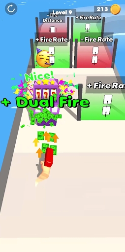 最富枪王英文名叫做Moneygun Run,是一款备受好评,且以跑酷闯关为主题的休闲游戏。玩家在这里将要去控制一把钞票枪,并在特定的关卡跑道上一路向前,在这过程中,玩家需要用枪去打爆道具的防御,然后再拾取道具让自己的活力变得更强,最终到达终点即可过关。游戏休闲好玩,且没有压力,随时就能拿出手机玩一把,欢迎感兴趣的小伙伴下载。