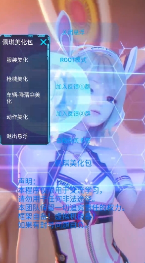 佩琪美化包是一款专为和平精英打造的游戏辅助工具。软件提供了服装、枪械、车辆、降落伞、动作等多种美化,用户可以根据自己的喜好进行更改轻松打造出独属于你自己的美化方案。软件支持悬浮窗使用,随时随地打开即用!感兴趣的小伙伴快来下载体验一下吧!