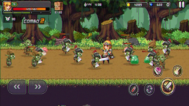 1、跟传统的动作手游是一样的,手指快速按动移动箭头就可以快速前进,这一招在躲避敌人的攻击时非常有用,你们一定要仔细练习,争取无伤通关。