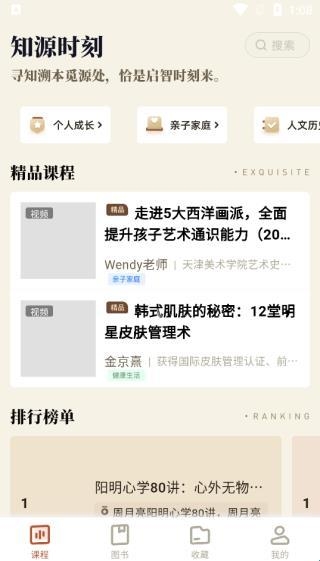 知源时刻app是一款非常好用的阅读学习类软件,这款软件拥有丰富的图书资源,包含文学名著、人文历史、心理健康、个人成长等多种类型,满足用户多样化的阅读需求。此外,它还包含了大量丰富的课程学习资源,用户可以在这里掌握更多的知识,了解更多的内容。软件的界面简洁,内容丰富,欢迎下载体验。