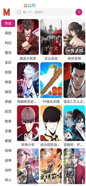 1、漫画分类与搜索,“漫画分类”板块按“题材”、“热度”、“年代”分类展示;“搜索栏”支持输入漫画名、作者名快速查找,支持模糊搜索;还能通过“猜你喜欢”推荐相似题材漫画,减少找漫画时间。