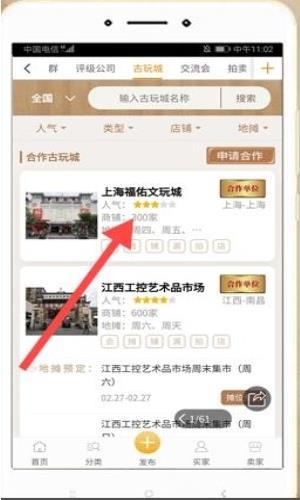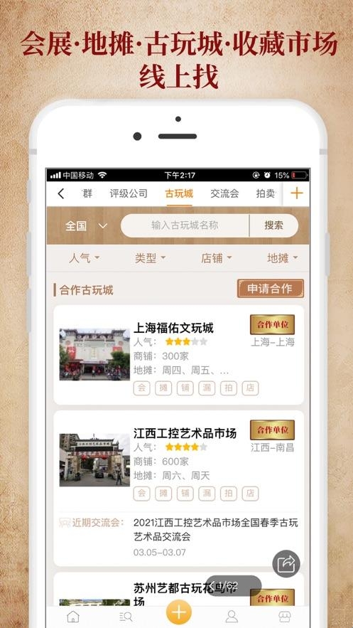 3、上海福佑文玩城、赫然在列,展示着其商家数量等信息,为藏友们线下交流、寻宝提供好去处。