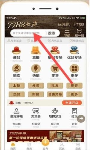 1、在7788收藏APP首页,搜索框醒目,用户可输入关键词,便捷开启藏品搜索之旅,探索各类收藏好物。