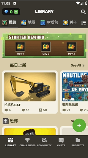 进入首页后,可以看到模组,地图,材质包,种子等文件。