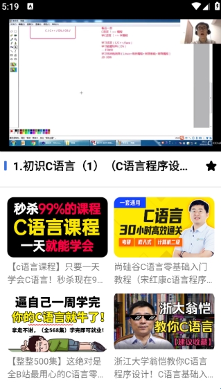 例如这个C语言课程就是把网上精选的内容免费送上来大家一起学习,下面还有一些延伸的视频课程可以学习;