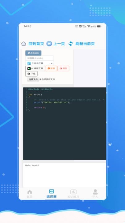 1、核心功能上做到了极致简洁与实用,摆脱电脑设备的束缚,随时随地开启编程实践,用户便能快速进入编辑界面,界面设计简洁明了;