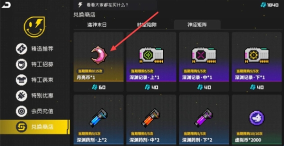 5、神经矩阵建议将获取的角色模组尽可能的分给红叶,这样有助于通过神经矩阵,个人建议新手纪念品搭配购物套,速通搭配推荐红叶+火二,也可以根据自身条件,做调整。该玩法以竞速为主的竞技玩法,更考验玩家自身实力,同时该玩法也并没联机等功能,此外该玩法还具有排行榜,玩家可以通过排行的相应位置获得相应奖励。兑换商店建议优先兑换月亮币,其余可以在资源允许的情况下兑换。