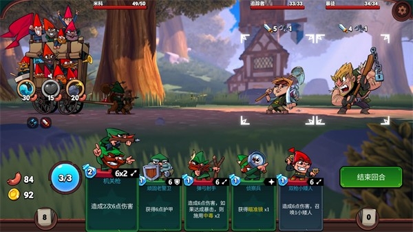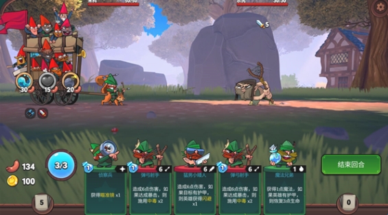5、进入战斗后玩家需要使用不同的小矮人卡牌击败对手,每个卡牌都会消耗1点魔法,最多有3点魔法可以使用。