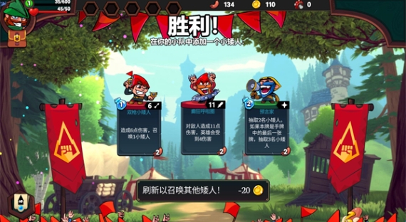 6、当你击败敌人后就可以获得胜利,击败敌人后玩家可以获得经验与金币,并同时选择一个小矮人加入到队伍中。