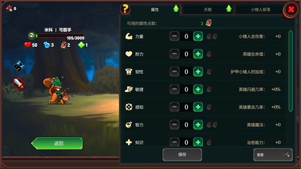 8、当收集一定经验后就可以提升等级,升级后玩家可以提升英雄点数和天赋,让你的英雄变得更强。