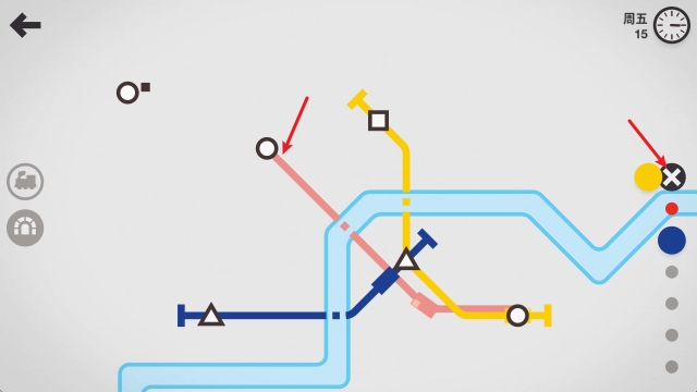 1、游戏中,拖动屏幕中的两点即可连线,建造起地铁轨道,随后就可以开始运行。