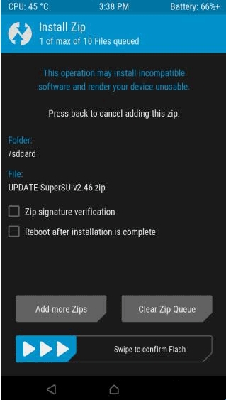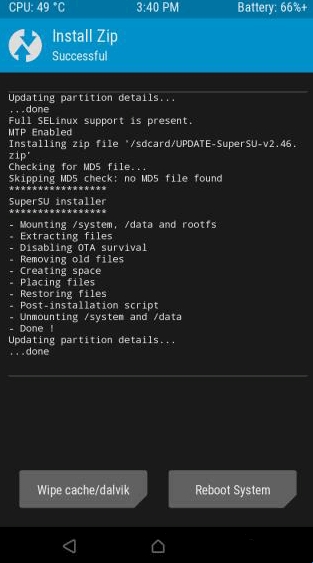 复制到手机SD卡中,重启手机进入Recovery,依照刷机步骤刷入刚才下载的SuperSU zip包。