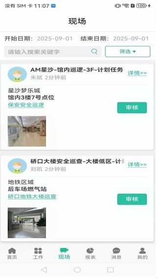 3、现场板块则是用来审核员工上传过来的巡查信息,例如保安巡逻了商场的某一些区域,如果是正常的话可以上传相关图片给管理者审核;